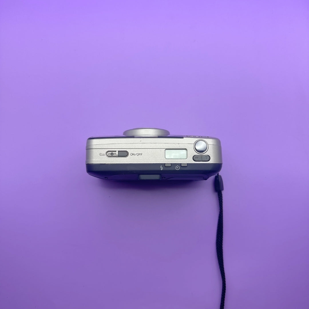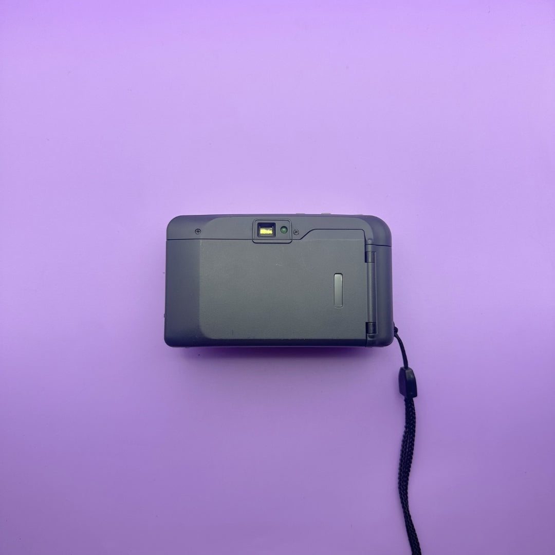 The Minolta Riva Zoom 90 is a simple but high-quality point and shoot film camera. The camera body is slim and compact. The lens is also high quality, leading to high-quality vintage photos. This is definitely a camera you want to bring around with you to capture your memories on film.